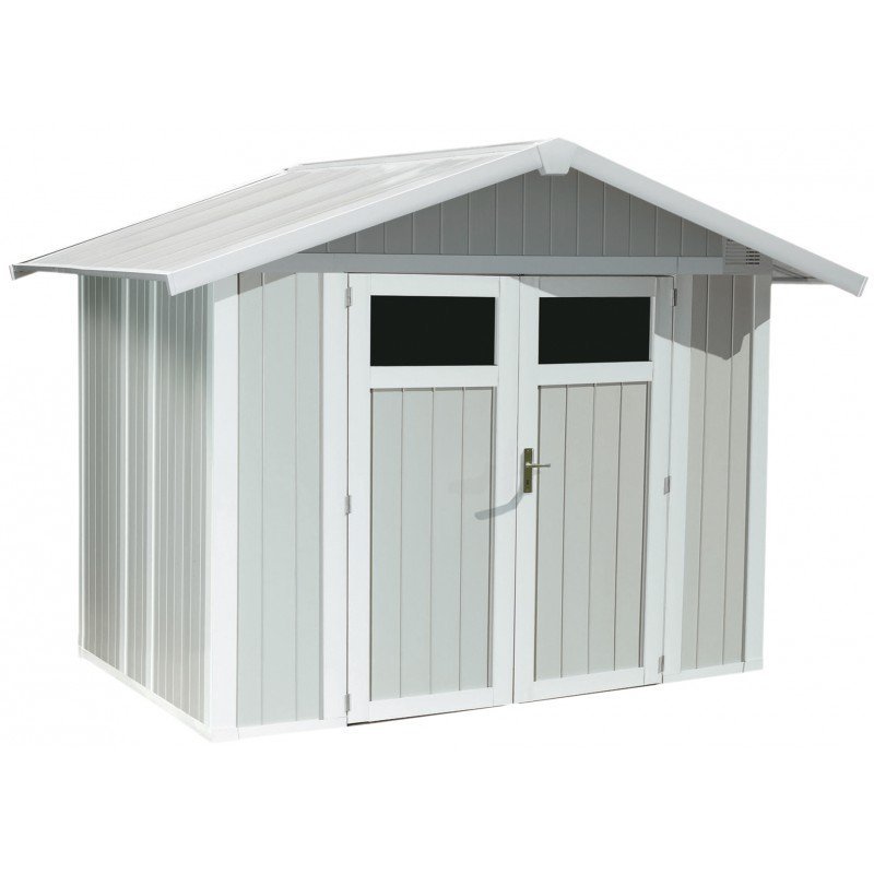 Abri de jardin en PVC 4,9m² UTILITY blanc et gris bleu Grosfillex | Compact, Robuste & Sécurisé